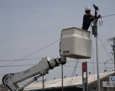また高所作業車を使った仕事、事務所移転・新設の電気設備工事なども行っております。